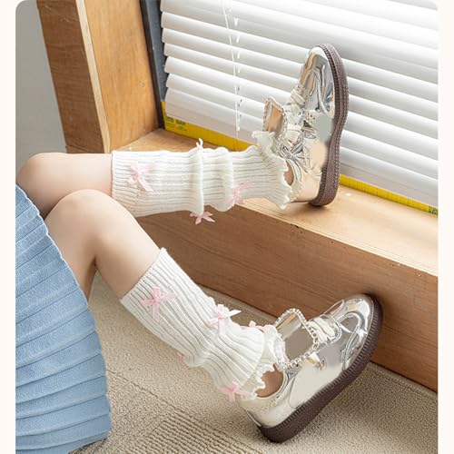 Kids Long Tube Socks with Bowknot Fashionable Leg Warmers Children Fashionable Long Leg Socks Pair for Girls Aged 3-8 6