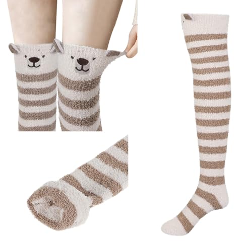 haozaikeji Girl Stripes Thigh High Socks Cat Warm Stocking Women Over Knee Floor Sock Cartoon Home Slipper Thighs Sleep Boot 4