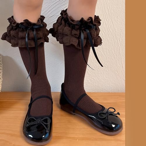 Baby Kneehigh Socks Cotton Midcalf Socks Kids Girl Spring Stretchy Puff Lace Trim Socks for Girl Dress Socks 6