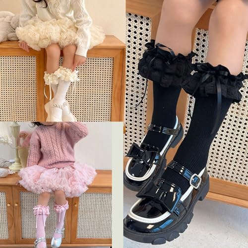 Baby Kneehigh Socks Cotton Midcalf Socks Kids Girl Spring Stretchy Puff Lace Trim Socks for Girl Dress Socks 4