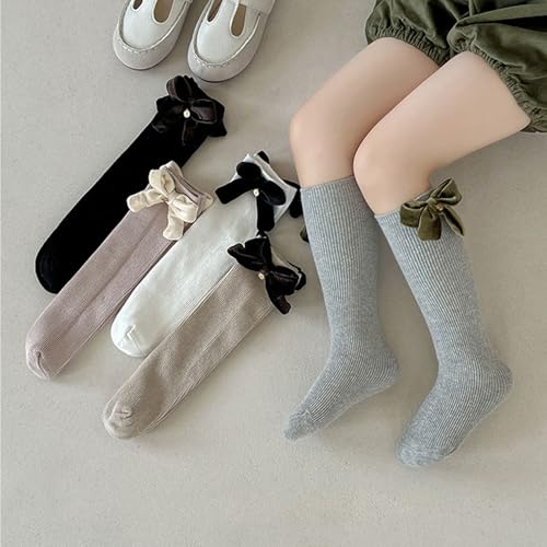 Girls Socks Knee High Cable Knit Slouch Socks with Bow 3-8 Years 4