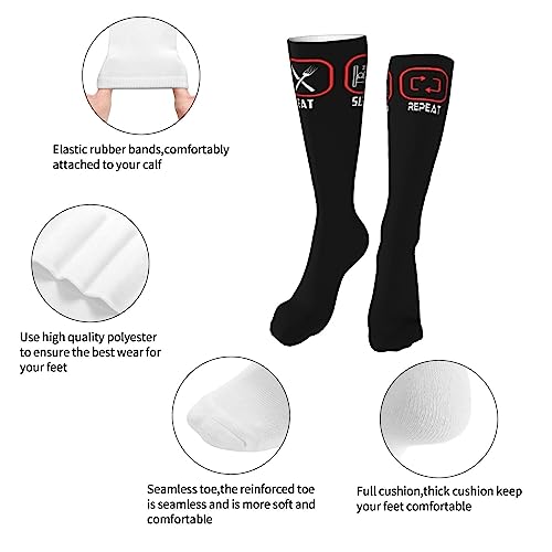 Eat Sleep Repeat Knee High Socks For Women Long Tube Socks Athletic Compression Socks Unisex High Socks Girls 6