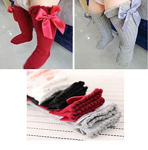Sywwlov Baby Girls Knee High Socks Toddler Big Bow Tube Ruffled Long Stockings Cotton Socks 6