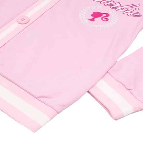 • Barbie Varsity Sweater: Our Barbie Girls V-Neck Button Up Cardigan features an eye-catching Barbie logo graphic print and embroidered design, making it a standout piece in any wardrobe. Barbie fans are sure to love the unique varsity design and details