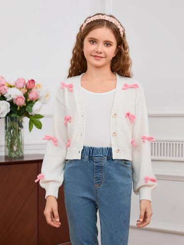 MakeMeChic Girl's Cute Cardigan 3D Bow Long Sleeve V Neck Button Down Cardigan Sweater Knitted Outerwear 8-12 Years 4