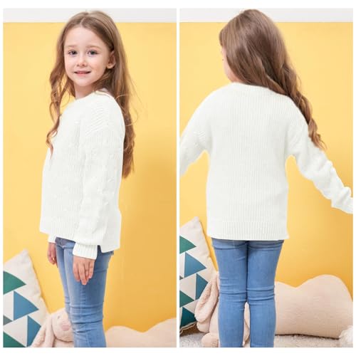 Girls Sweaters Crewneck Long Sleeve Pullover Jumper Cotton Fall Chunky Fancy Cable Knit Sweater with Side Slit 6