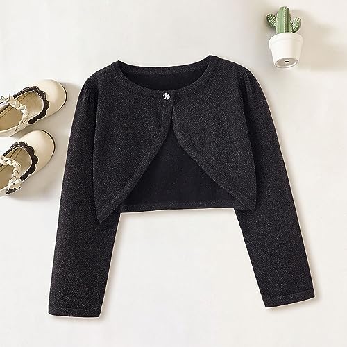Toddler Girls Long Sleeve Sparkle Bolero Cardigan Baby Kids Button Closure Knitted Shrug Cropped Sweaters Tops 3