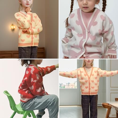 More information about FindThy Girls Heart Print Cute Cardigan Long Sleeve V Neck Brushed Sweater Kawaii Cardigan Coat