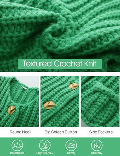 HOT ! Flygo Girls Sweater Vest Chunky Button Down Crochet Knit Cardigan Trendy Sleeveless Sweaters Top with Pockets 5-14 Years