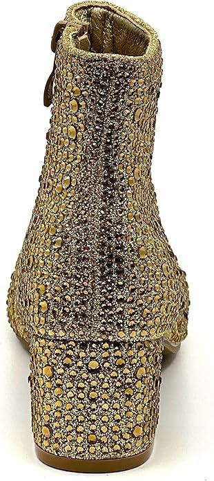 More information about Forever Girls Rhinestone Boots Kids Low Heel Dress Booties Iceberg-12K Shoes Gold Rhinestone 2
