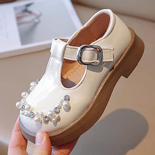 More information about Fashion All Seasons Children Casual Shoes for Girls Flat Sole Thick Sole Non Slip Round Toe Pearl Buckle Neoprene Boots (Beige, 5-5.5 Years Little Child)