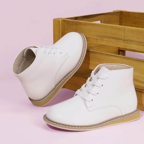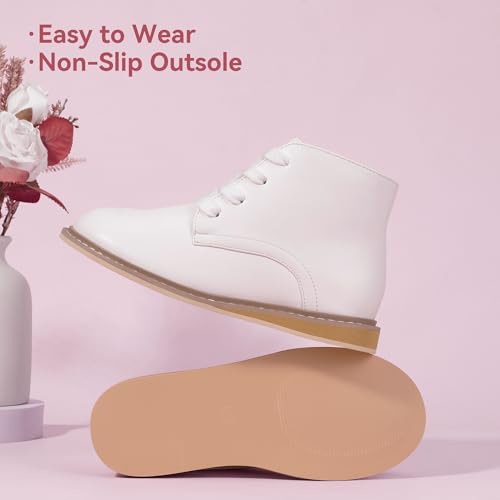 PANDANINJIA Toddler Girls Boots Kids Fashion Spring Fall Short Ankle Booties Comfort Lace Up Girl Flats Dress Shoes 4