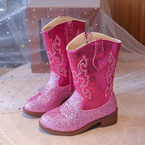 IWIHMIV Girls Cowboy Boots Comfortable Long Booties Low Block Heels Toddler Girl Riding Boots With Side Zipper 1