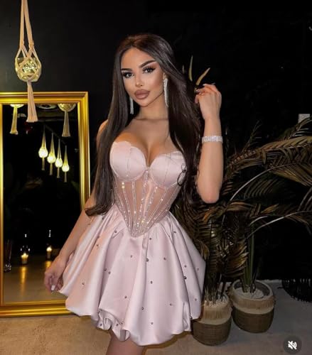 More information about Satin Short Homecoming Dresses Beading Strapless Mini Dresses A Line Backless Cocktail Dress