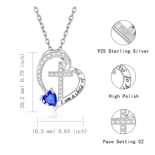 MANBU Sterling Silver Cross Necklace for Girls: Heart Birthstone I am a Child of God Pendant Religious Jewelry Baptism First Communion Confirmation Gifts for Teens 5