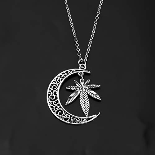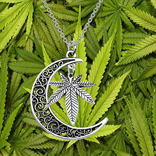 HOT ! BEKECH Marijuana Leaf Charm Crescent Moon Necklace Marijuana Leaf Jewelry Cannabis Weed Necklace for Girlfriend Wife Friends