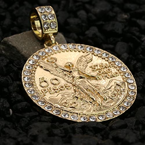 HOT ! Hip Hop Centenario 50 Pesos Pendant Iced Cubic Zirconia 4mm 24" Rope Chain 14k Gold Plated Necklace