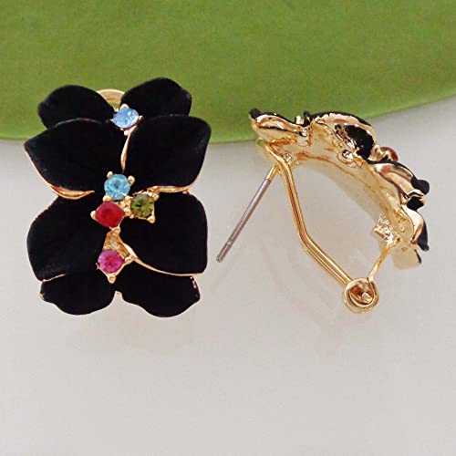 Navachi 18k Gold Plated Colorful Crystal Multi-color Enamel Leaves Flower Omega Back Earrings 5