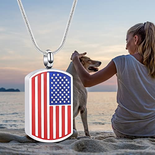 HOT ! American Flag Cremation Jewelry for Ashes for Loved Ones Urn Necklace Memorial Keepsake Ashes Holder for Pets Dogs Cats(Silver 2)