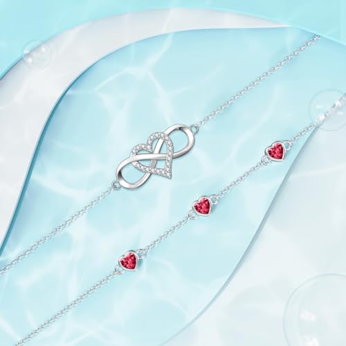 Dorunmo 925 Sterling Silver Infinity Heart Birthstone Anklet Bracelets for Women Best Mother's Day Birthday Jewelry for Wife Girlfriend Mom Her 3