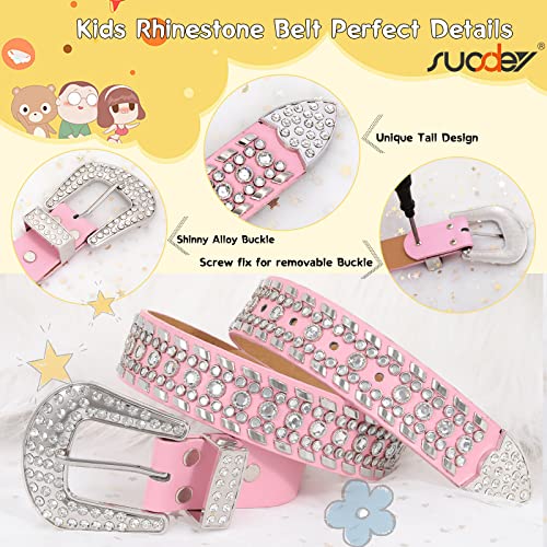 SUOSDEY Kids Rhinestone Belt for Girls Boys,Western Cowgirl Cowboy Studded Leather Belt for Child 4