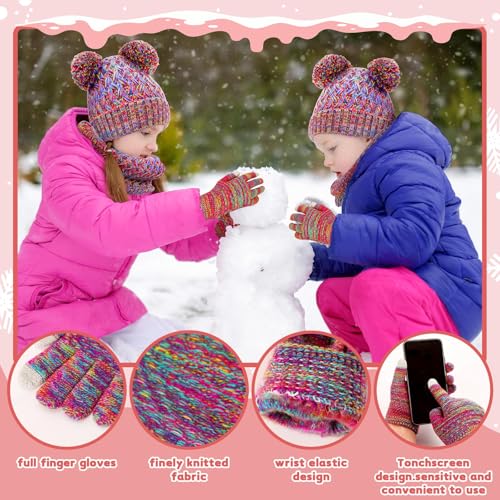 Kids Winter Hat Gloves Scarf Set,Girls Hats Beanie with Pom Knit Neck Warmer Gaiter Mittens Fleece Lined Set 1-6 Years 4