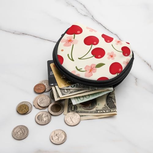 More information about Portable Coin Purse Cherry Sakura Blossom Mini Zippered Money Pouch Card Holder
