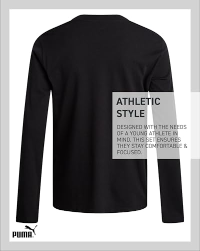 PUMA Boys Long Sleeve Shirts - 2 Pack Athletic Youth Crew Neck Performance Activewear Boys T Shirts for Kids (8-20) 3