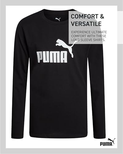 HOT ! PUMA Boys Long Sleeve Shirts - 2 Pack Athletic Youth Crew Neck Performance Activewear Boys T Shirts for Kids (8-20)