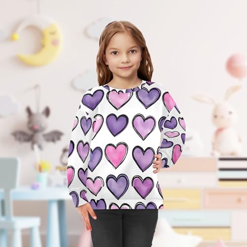 JUNZAN Purple Pink Heart Watercolor Little Girls Pullover Hoodie Long Sleeve Kids Hoodies Boys Party 4T 5
