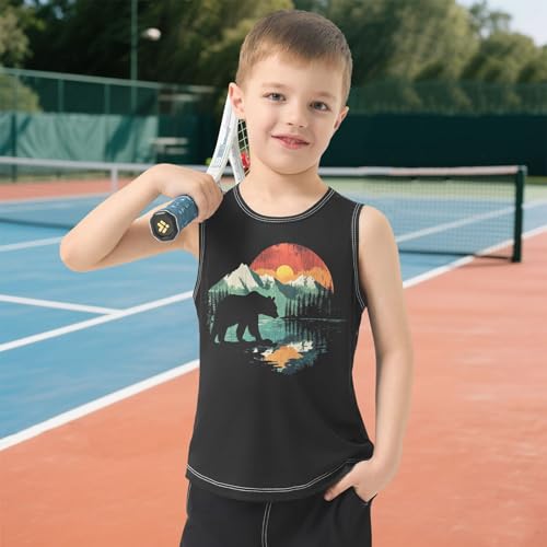 Boys Tank Top Shirts Colorful Retro Bear Forest Sleeveless T-Shirts Crew Neck for Kids Clothing Children 6