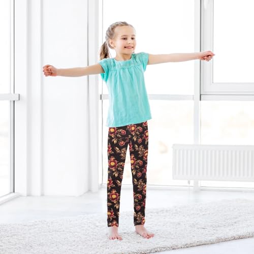 ALAZA Girls' Leggings Children's Yoga Pants Skinny Printed Dance Red Peony Comfortable 4T 6