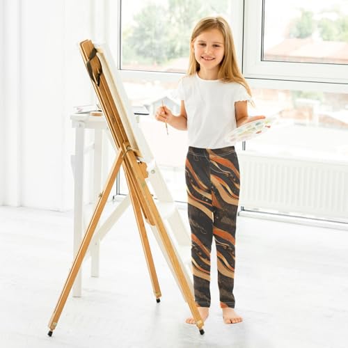 Gold Pattern and Black Kids Baby Girls Active Leggings Stretch High Waisted Pants Gym 4