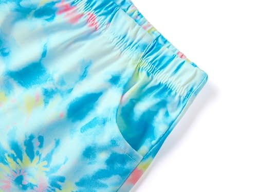 • Feature: This girls pajama set features a stylish blue multi-colored tie-dye pattern on the short sleeves and shorts. This outfit will make girls stand out on pajama day or at a slumber party.