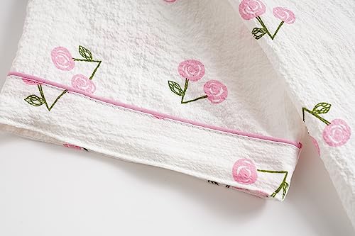 • Style/Design: Short sleeve 2PCS sets with a shorts pajama sets for kids or teens. Elastic waistband. Funny patterns printed with floral, bunny, cherry, and heart shape. Button Down and shirt collar design, lightweight and comfortable for loungewear and nightwear, super soft and breathable material are skin-friendly.