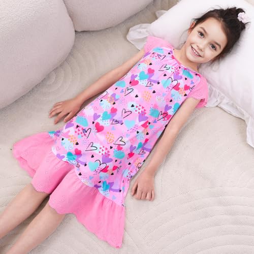 • Sweet Style: The sleeves and hemlines are decorated with lace embroidery, with a classic round neckline and stretchy collar for easy dressing. With knee-length design, and a relaxed fit, girls' sleepwear ensures both comfort and freedom of moved freely