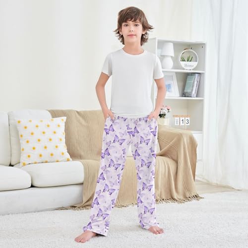 Pajama Pants Lounge Sleep PJ Bottoms Sleepwear Elastic Waist Drawstring S Purple Butterflies 5