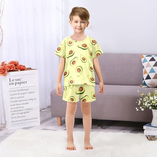 Cartoon Avocado Yellow Pajama Set Short Sleeve Pajamas Shorts Sets Cotton PJS 2 Piece Clothes Set 5Y 5