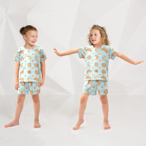 Pajama Short Sets Croissant Moon Cookie Flower Soft Cotton Summer Sleepwear 2 Piece PJS Size 5-14T 1