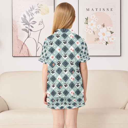 senya Dog Paw Print on Plaid Satin Summer Pajama Sets Silk Short Sleeve Button Down Sleepwear 6