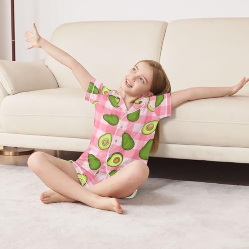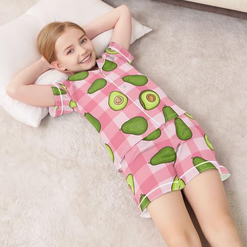 ALAZA Plaid Avocado Pajamas Satin Pajama Set Short Sleeve Button Down Sleepwear 6