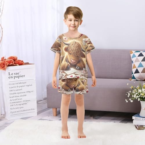 Highland Cow Valentines Pajama Set Short Sleeve Sleepwear Soft Pajamas Shorts Sets Cotton PJS 5Y 4