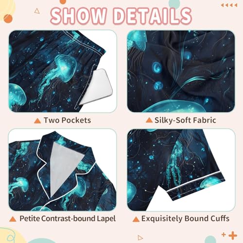 ALAZA Blue Jellyfish Starry Satin Pajamas Set Short Sleeve Button Down Sleepwear Summer Pjs 2 Piece 1