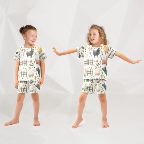 Pajama Sets Short Sleeve Farm Animals Pattern Print Soft Cotton Summer Sleepwear 2 Piece PJS Size 5-14T 1
