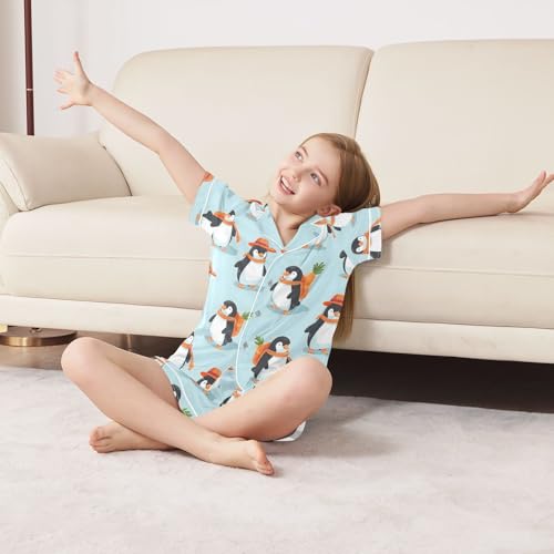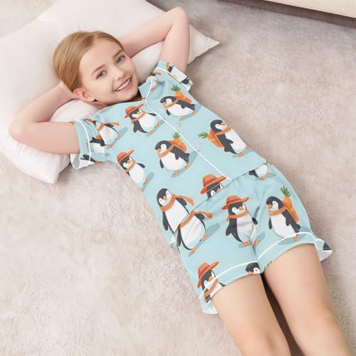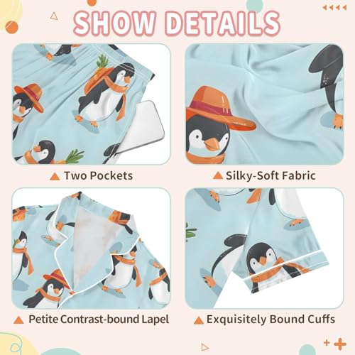 ALAZA Penguin Carrot Blue Satin Pajamas Set Short Sleeve Button Down Sleepwear Summer Pjs 2 Piece 6