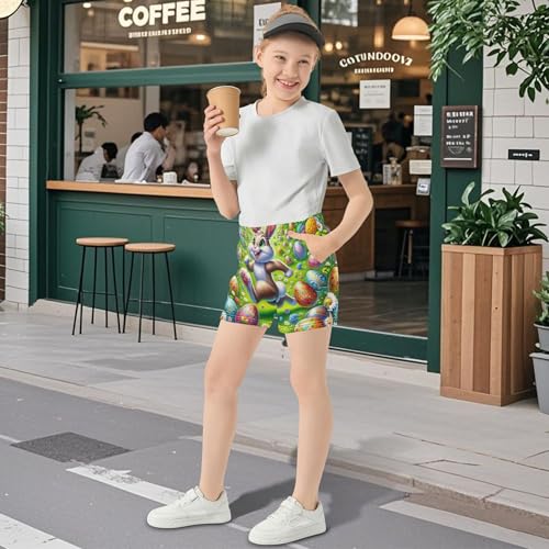 Girls Shorts Easter Bunny Joyful Meadow Floral Print Kids Athletic Cute Pajama Activewear Summer Clothes, X-Small 4
