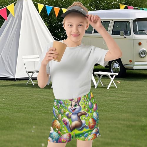 Girls Shorts Easter Bunny Joyful Meadow Floral Print Kids Athletic Cute Pajama Activewear Summer Clothes, X-Small 5
