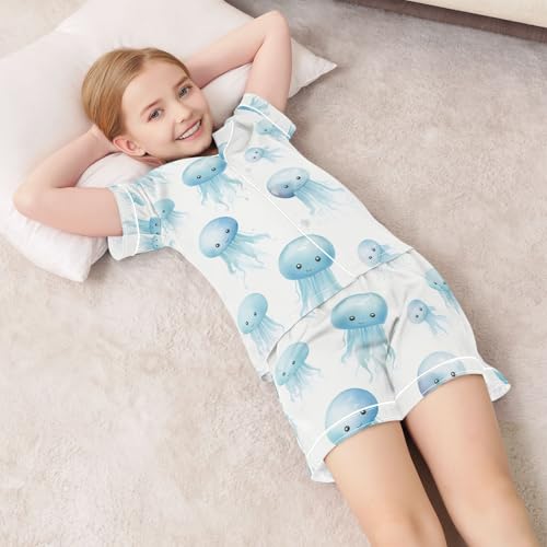 senya Sea Jellyfish Satin Summer Pajama Sets Silk Short Sleeve Button Down Sleepwear 1