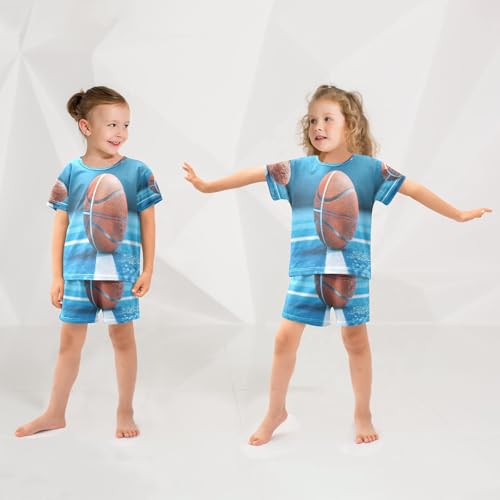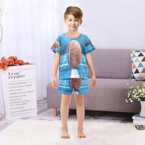 ALAZA Basketball Blue Pajamas Set Short Sleeve Cotton Sleepwear Summer Pjs 2 Piece 5-14Y 2