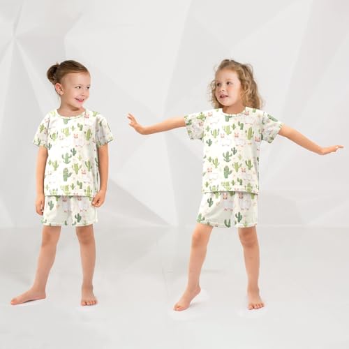 ALAZA Cactus Alpaca Cartoon Pajamas Set Short Sleeve Cotton Sleepwear Summer Pjs 2 Piece 5-14Y 2